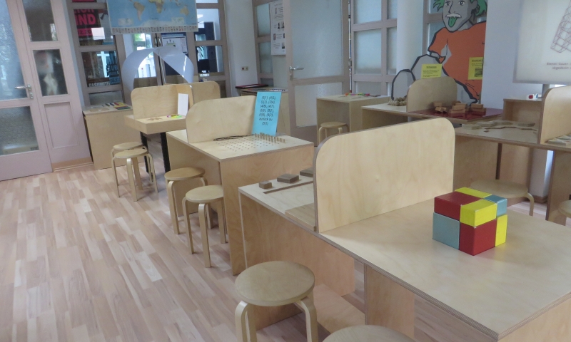 Exhibits sollen zum Entdecken und Erkunden mathematischer Phänomene einladen. Sie visualisieren mathematische Formeln, fordern eine Auseinandersetzung mit Spielstrategien, oder machen Beweise mathematischer Sätze „angreifbar“. Allen Spieltischen liegt das Konzept FEEL zugrunde: Forschen – Entdecken – Erkennen – Lernen.